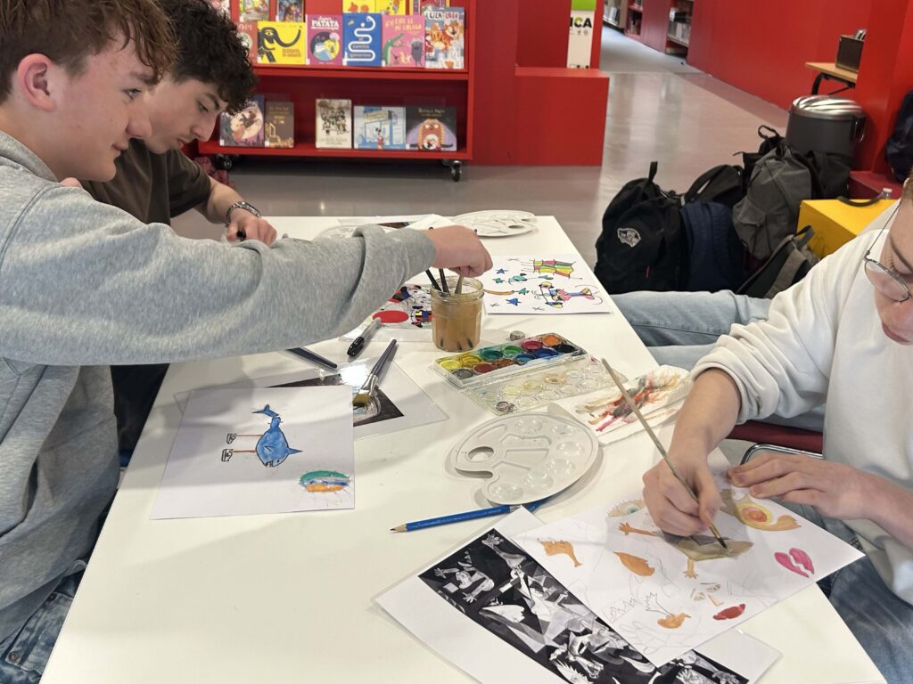 Après une courte introduction à leurs styles respectifs, les élèves ont choisi une œuvre comme point de départ pour créer leur propre interprétation. Le tout entièrement en espagnol, guidés par une illustratrice barcelonaise qui les a accompagnés pas à pas.